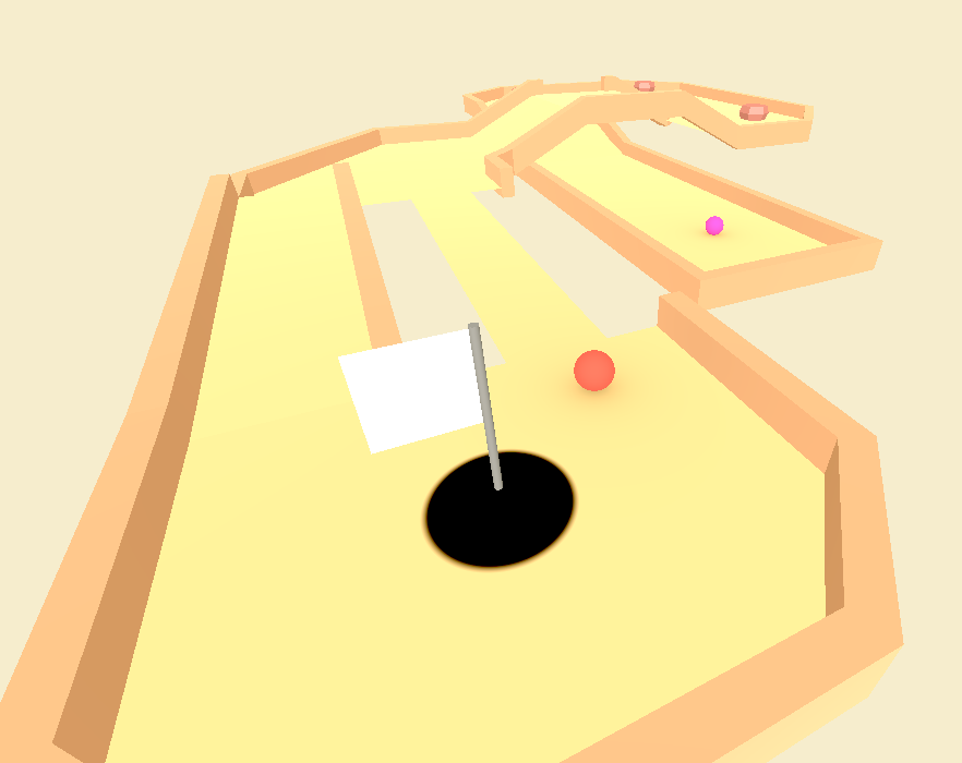 Minigolf where the first ball to reach the hole becomes the hunter of the other balls.